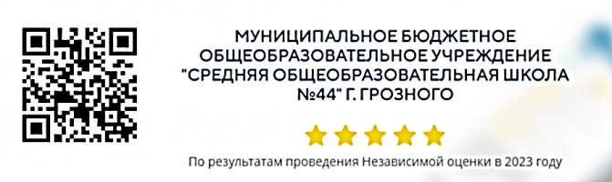 Приветствую Вас, дорогие посетители сайта Муниципального бюджетного общеобразовательного учреждения "Средняя общеобразовательная школа № 44" г. Грозного.Сайт адресован всем, кому интересно знать, чем живет наше образовательное учреждение. Наша школа - это пространство успеха и неограниченных возможностей для наших детей. Это надежный теплый дом, где есть работа и отдых, праздники и будни, а самое главное - добрые традиции. Место, где для детей обеспечивается комфортное и безопасное обучение. Мы открыты для общения. На сайте можно узнать все, чем живет школа. Добро пожаловать на наш сайт!