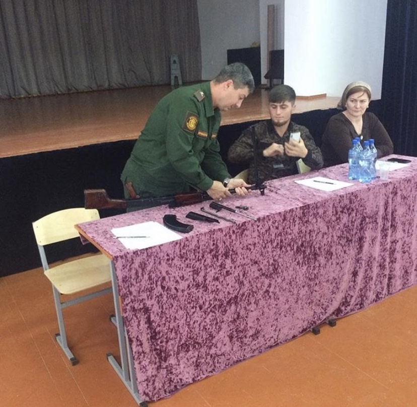 07.11.2019В МБОУ"СОШ44"г.Грозного состоялась встреча юнармейцев и учащихся школы с Шариповым Якубом Мусаевичем,Начальником штаба ВВПОД Юнармия ЧЕЧЕНСКОЙ РЕСПУБЛИКИ и помощником военного комиссара ЧР по военно-патриотической работе Хаджимуратовым Миром Николаевичем,встреча была проведена по школам четырех районов г.Грозного по поручению ГЛАВЫ ЧЕЧЕНСКОЙ РЕСПУБЛИКИ,ГЕРОЯ РОССИИ РАМЗАНОМ АХМАТОВИЧЕМ КАДЫРОВЫМ. В ходе встречи была проведена беседа,которая способствовала духовно-нравственному и гражданско-патриотическому воспитанию подрастающего поколения,которое должно стоять на страже интересов и благополучия своей республики ,приумножать и ценить духовное наследие,нравственные и культурные ценности своего народа.В контексте этой беседы была продемонстрирована сборка и разборка автомата Калашникова.Учащиеся с большим интересом слушали гостей.